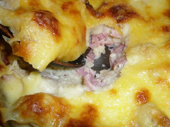 Häll ostsåsen över blomkålen och klipp i lite rökt skinka eller bacon – ett påläggspaket räcker. Toppa med lite mer riven ost och så in i ugnen. Den är klar när ytan är vackert gyllenbrun. Avnjutes med fördel till en fräsch sallad, gärna på gurka och tomater. Smaklig måltid!