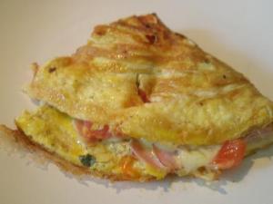 När omeletten är krämig och nästan klar kan du slänga på lite smått och gott som du har hemma, t ex strimlad rökt skinka, hackade örter, paprika, tomater eller vad det nu kan vara – eller lite av varje för den delen. Sedan några skivor ost överst och på med ett lock. Låt stå på svag värme en stund tills osten smält. Vik sedan ena halvan av omeletten över den andra när du serverar. Gott och enkelt!