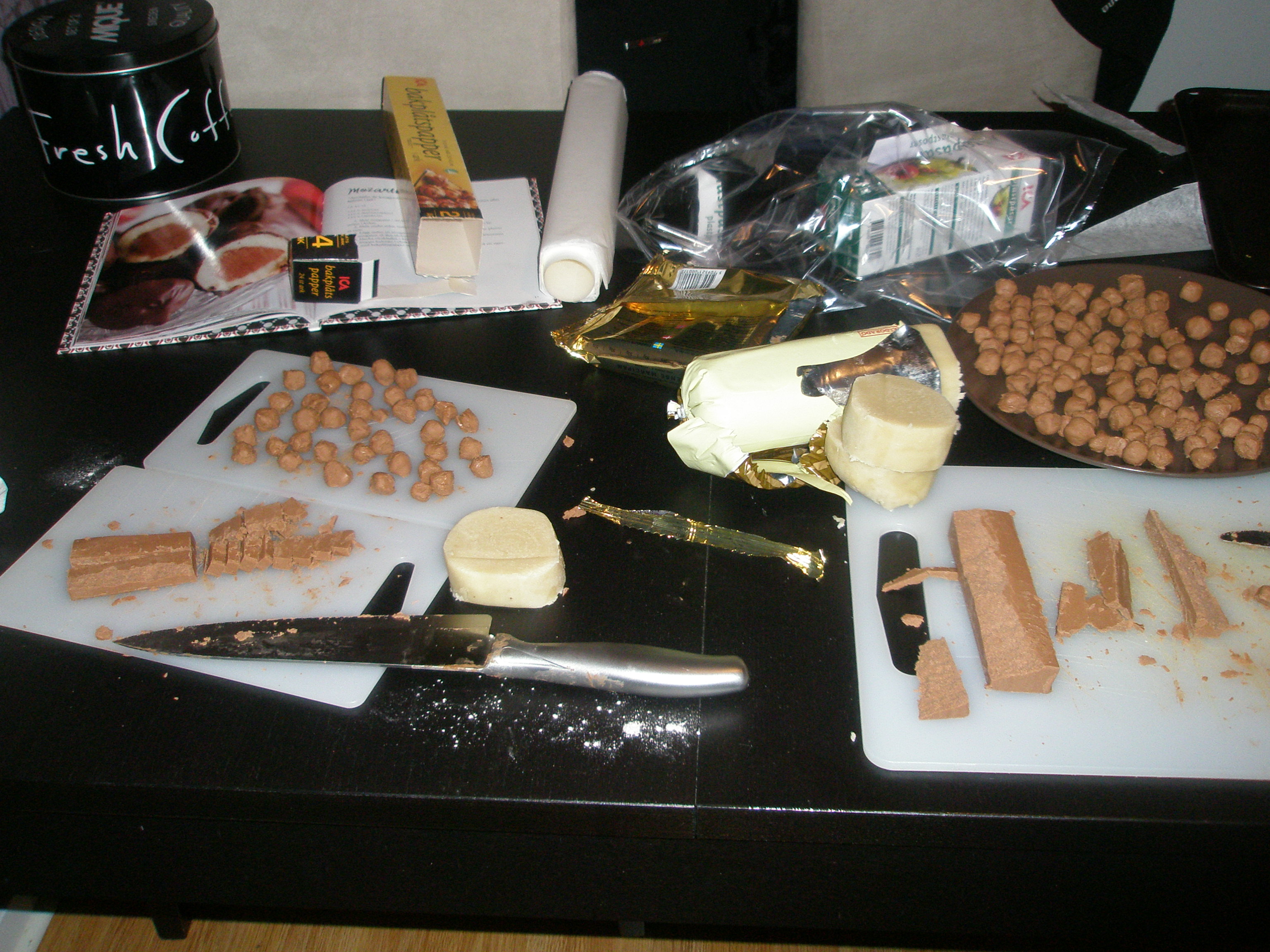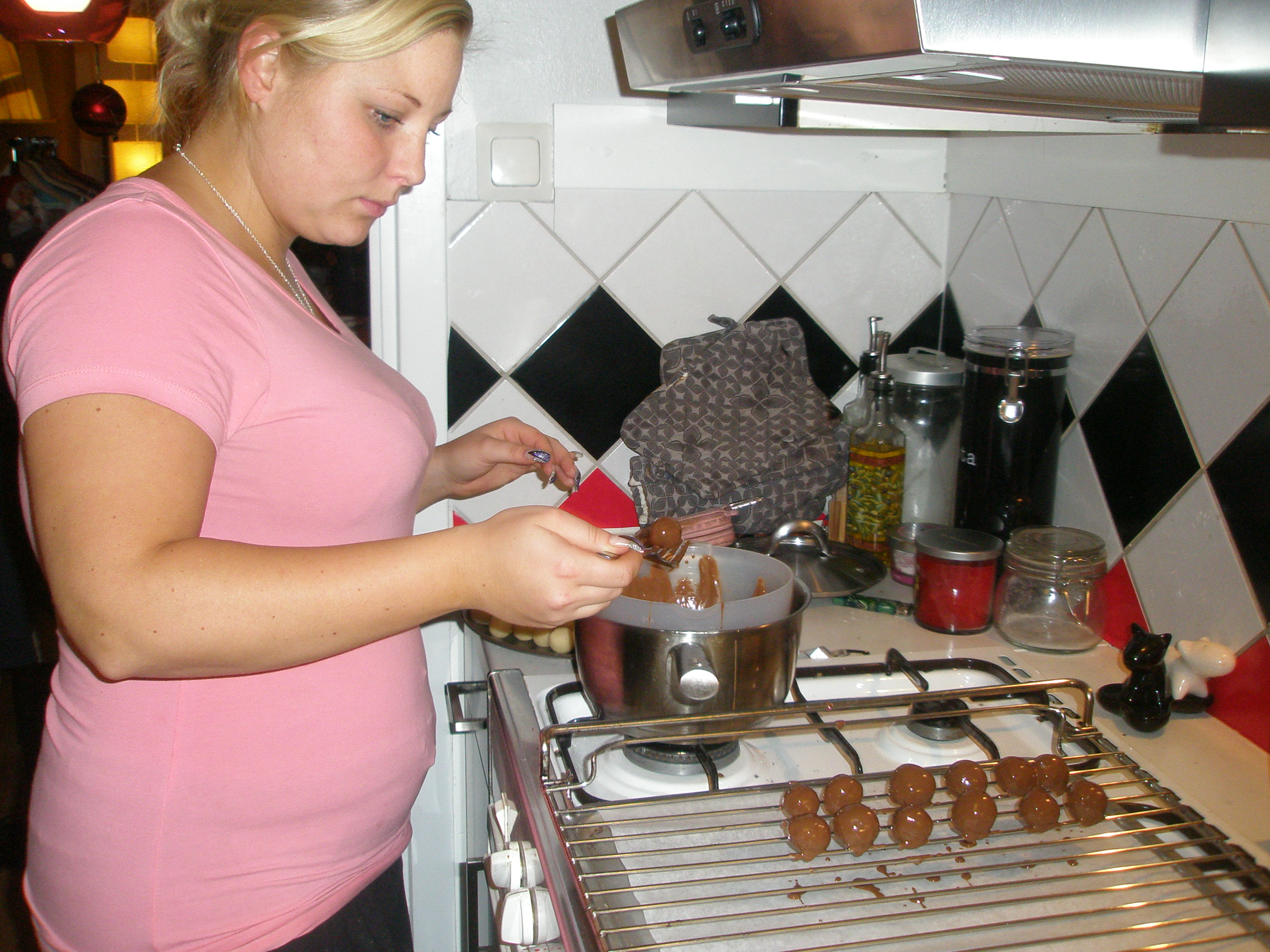 Häromkvällen träffades vi några vänner och lagade julgodis tillsammans. Det är så roligt att vara flera, och dessutom går det ju snabbare – i alla fall om man ska rulla Mozartkulor… Och det ska man. Tycker jag, i alla fall, för godare julgodis får man leta efter! Här är ett recept som ger ca 30 kulor:
