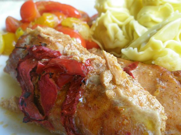 Idag valde jag att servera kycklingen med färsk pasta (ostfylld tortelloni) och frästa halverade cocktailtomater i olika färger och former. Jag kryddade tomaternamed örtsalt och svartpeppar men man kan också tänka sig andra kryddor, till exempel persillade. Det blev en läcker och festlig lunch på nolltid!