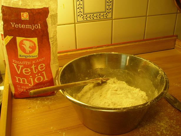 Jag valde att göra som min mormor brukade göra; jag satte en vanlig vetedeg med mycket smak av nystött kardemumma och sen bakade jag ut degen till enkla längder och skar till skivor och gjorde så kallade långskorpor. Vill du prova själv hittar du mitt vetebrödsrecept här! Följ det ända fram till utvkavlingsmomentet – dela istället degen i fyra delar och rulla ihop fyra längder. De behöver inte penslas med ägg, utan jäs dem bara på plåt i ca 30 minuter och grädda dem sen i 200 grader i mitten av ugnen i ca 40 minuter eller tills de får fin färg.