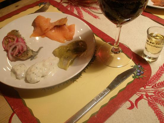 Sill, inlagd strömming, lax och hemkryddad nubbe inleder julmiddagen!