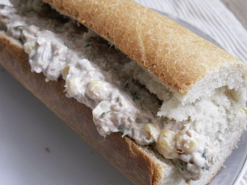 Tonfisk är bra att ta till om ekonomin är ansträngd – ofta säljs den på extrapris och då kan man passa på att inhandla några burkar och ställa i skafferiet. Den här röran brukar sonen, som är student och alltid måste vända på slantarna, röra ihop och äta som fyllning i baguette eller till bakad potatis: