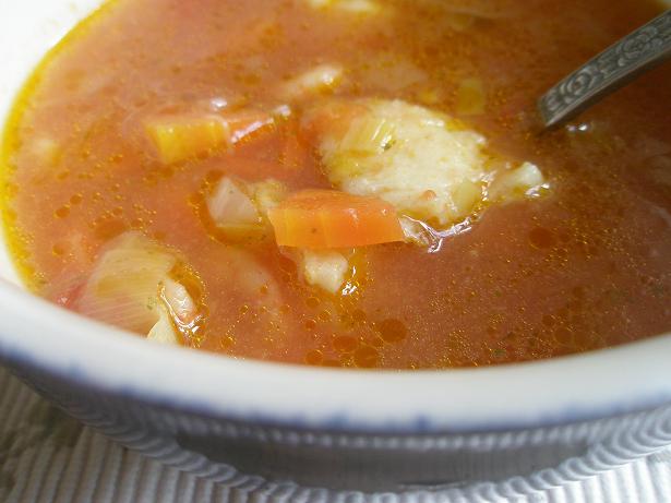 Fräs lök, vitlök och morötter i lite olja tills de mjuknar. Strö över en gnutta chilipulver och stänk i några droppar hot sauce och låt detta fräsa med. Häll på de krossade tomaterna samt buljongen och låt koka i ca 10 minuter. Dela fisken i bitar och tillsätt den. Låt koka i ca 15 minuter. Tillsätt sedan de färska tomaterna och låt puttra ytterligare några minuter. Smaka av med salt och peppar och servera med gott bröd och eventuellt aioli. Smaklig måltid!