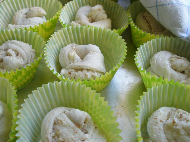 Bullar kan man baka ut på flera sätt. Antingen rullar du ihop degkakan och skär centimetertjocka bitar av den, eller så kan du baka ut den till knutar. Då viker du degen mitt över, kant mot kant – eller viker upp hälften, sedan resten så det blir tre lager. Skär sedan i centimetertjocka remsor. Ta en remsa och håll ena sidan mellan fingrarna i ena handen och den andra sidan mellan fingrarna i andra handen. Snurra sedan var sida åt varsitt håll, så att remsan blir tvinnad. Knyt ihop den till en knut och lägg i bullform.