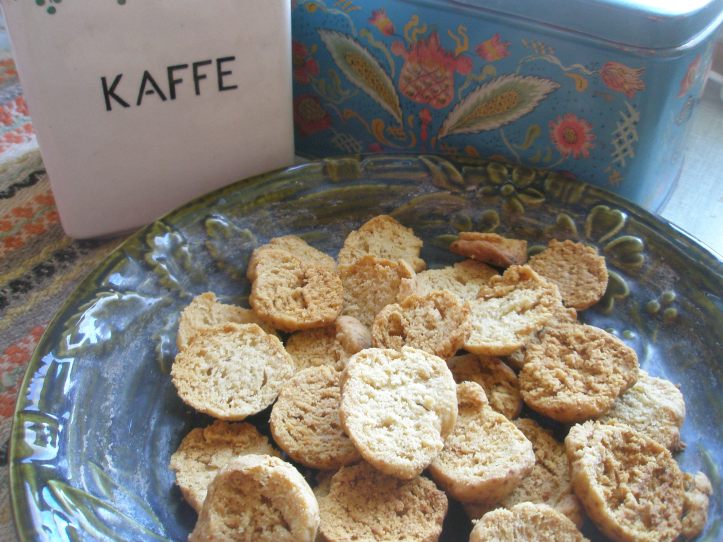 Härligt kardemummadoftande är de lika goda till te och kaffe som till efterrättskrämer och fruktkompott – och bäst är att de inte innehåller något vanligt socker alls! Jag har bakat dem med SteviaVital – men vill du kan du givetvis byta ut det mot motsvarande mängd av strösocker eller annat sötningsmedel. Receptet ger ungefär 80 små skorpor – om du tycker det blir för mycket går det jättebra att halvera receptet!