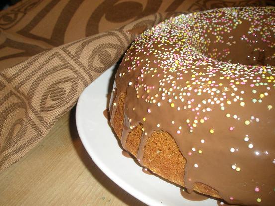 Sätt ugnen på 175 grader. Smörj och bröa en form på 2 l. Rör äggen med sockret. Smält smöret och blanda med mjölken. Låt svalna och häll sedan i äggsmeten. Rör ihop vetemjöl med bakpulver och vaniljsocker och blanda detta i smeten. Smält chokladen i vattenbad eller mikrougn. Häll sockerkakssmeten i den smorda formen, och häll sedan i den smälta chokladen. Rör om lite med en gaffel så att chokladen blandas med smeten. Grädda långt ner i ugnen i ca 35-40 minuter eller tills kakan blivit torr.