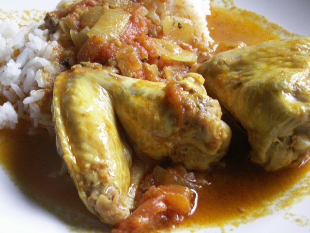 Lägg ner kycklingvingarna i grytan, salta och peppra och tillsätt lite vatten. Låt puttra under lock i 45-60 minuter eller tills kycklingvingarna är kokta. Servera med det persiska riset.