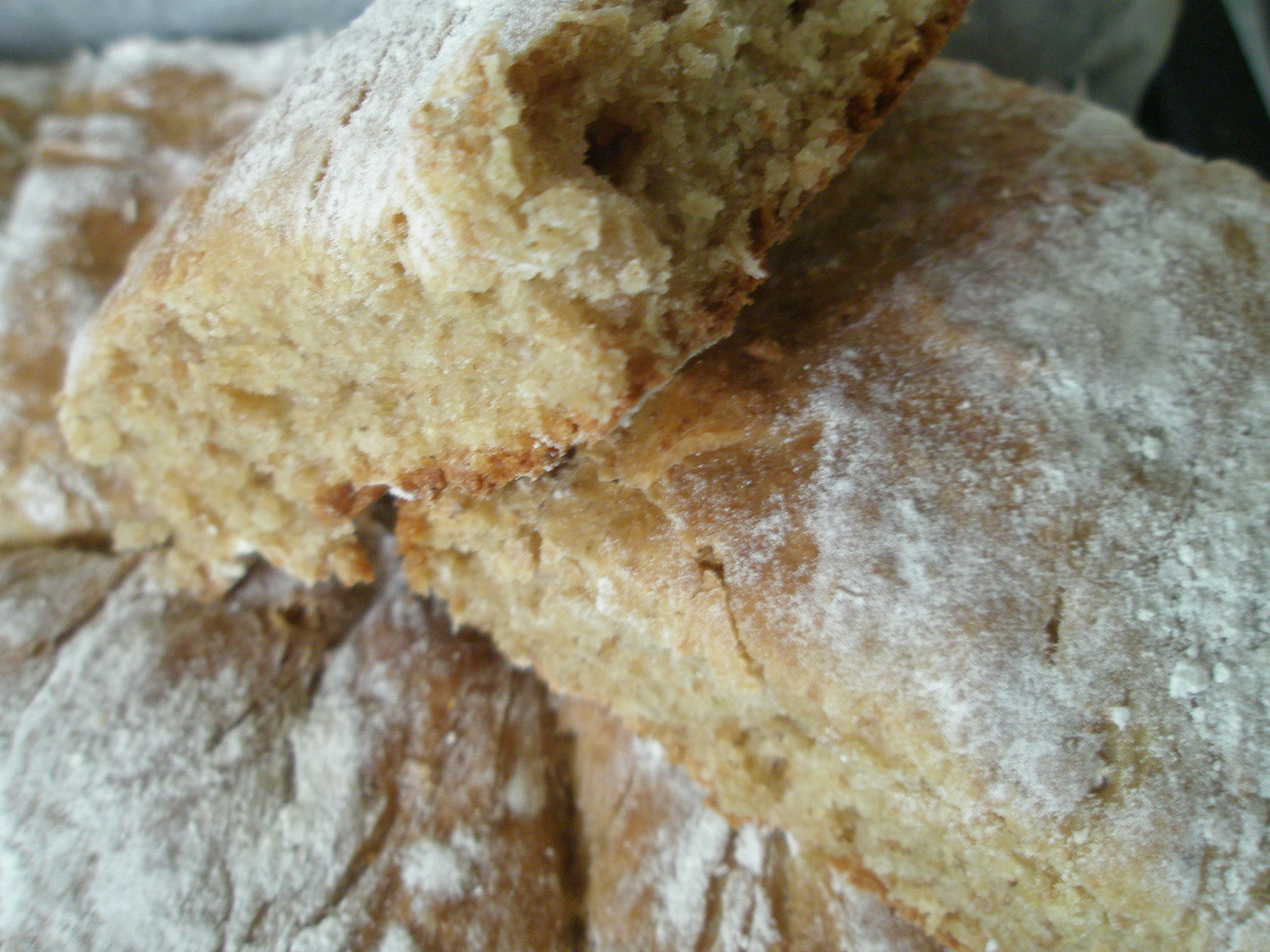Pensla brödet med lite vatten och skåra i lagom stora bitar. Strö gärna lite havregryn eller grovt mjöl över. Grädda i mitten av ugnen i ca 30-40 minuter. Brödet går utmärkt att frysa.