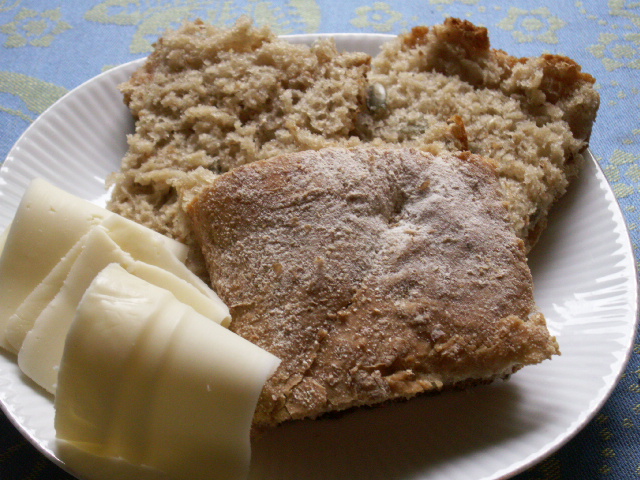 Brödet gräddade jag i mitten av ugnen i ca 35 minuter, och lät sen svalna under bakduk. Underbart gott varmt med smör som smälter lite, och kanske ett par ostskivor – varm choklad till är inte fel nu när hösten börjar göra sig påmind… Sen är det ju alltid härligt att ha lite hembakat matbröd i frysen att ta fram till frukosten!