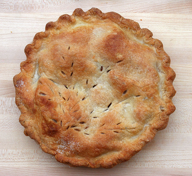 Kavla ut resten av degen så att den täcker pajen. Ansa och dekorera kanterna och skär några djupa skåror i deglocket så att ångan kan tränga ut. Får du deg över, forma några vackra dekorationer.