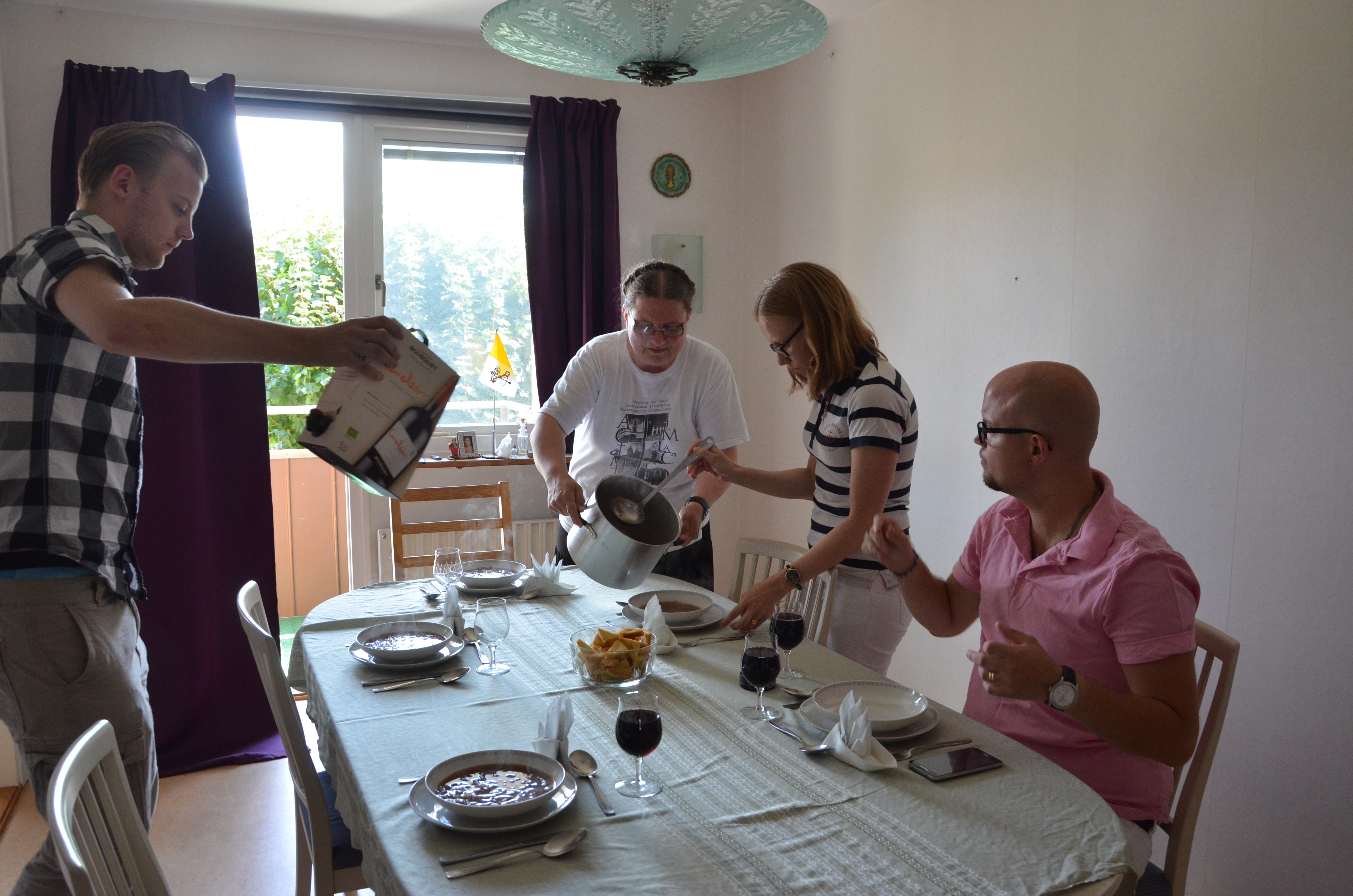 Söndagsmiddag hos goda vänner i Göteborg. Febes lyxiga löksoppa, följt av vildsvinsfilé och klyftpotatis och till dessert… GLASSPROVNING! Fem fantastiska sorter, alla hemlagade av Febe själv: Jordgubb, citron, honung, konjak och kardemumma. Inte helt lätt att nämna en favorit bland alla dessa underbara smaker men till slut fick honung och citron dela på förstaplatsen… Kaffe och konjak förhöjde smak och stämning ytterligare. En alldeles särdeles trivsam dag!