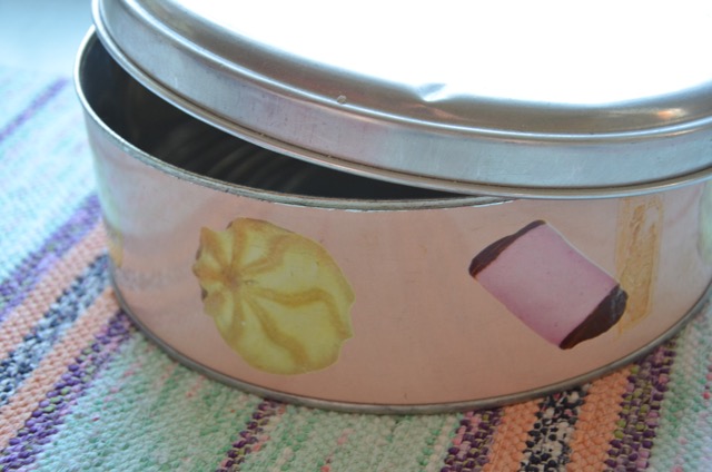 Finns det något som är så mysigt som att hitta gamla härliga prylar från förr! Häromdagen besökte jag mitt barndomshem, som jag till min stora glädje fortfarande har i min ägo, och i vanlig ordning rotade jag runt i skåp och lådor för att hitta ljusa och glada barndomsminnen. Och till min lycka hittade jag denna underbara kakburk, daterad någon gång tidigt 1960-tal. Snart ska jag fylla den med kakor inför helgens stundande kaffekalas. För sensommartid är tid för kafferep, den saken är klar!