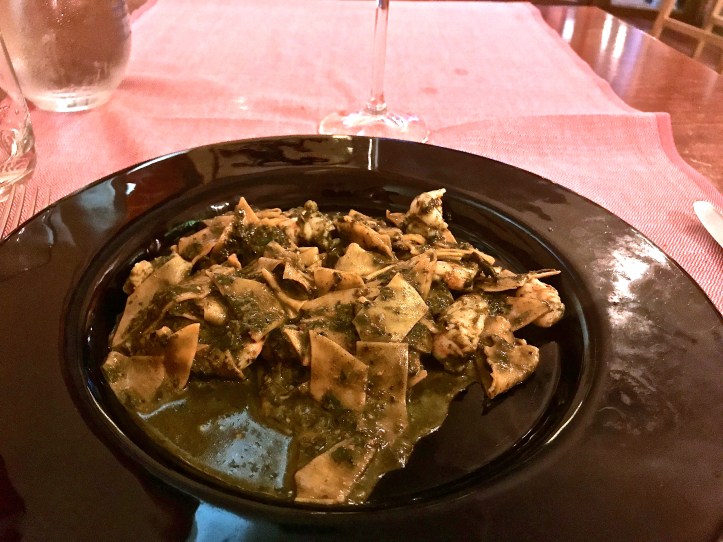 Min absoluta favorit bland restaurangerna i Rom är dock ingen av de mer ”vanliga”, utan en riktigt fin restaurang alldeles i närheten av Vatikanen, Taverna Angelica. Jag vet inte ens var jag ska börja när jag ska försöka beskriva denna fantastiska restaurang – det räcker liksom inte att säga att det är trevligt där, eller att maten är god. Att äta middag på Taverna Angelica är att vara ute på ett kulinariskt äventyr. Rena, fina smaker i kombinationer som får smaklökarna att jubla. Grillad lax på avokadokräm. Pasta med pistaschpesto. Grillad bläckfisk med gazpacho. Kammusslor med mangokuber, ingefärsolja och potatis. Grillat lamm och kalv med utsökta tillbehör. Desserter som inte är av denna världen.