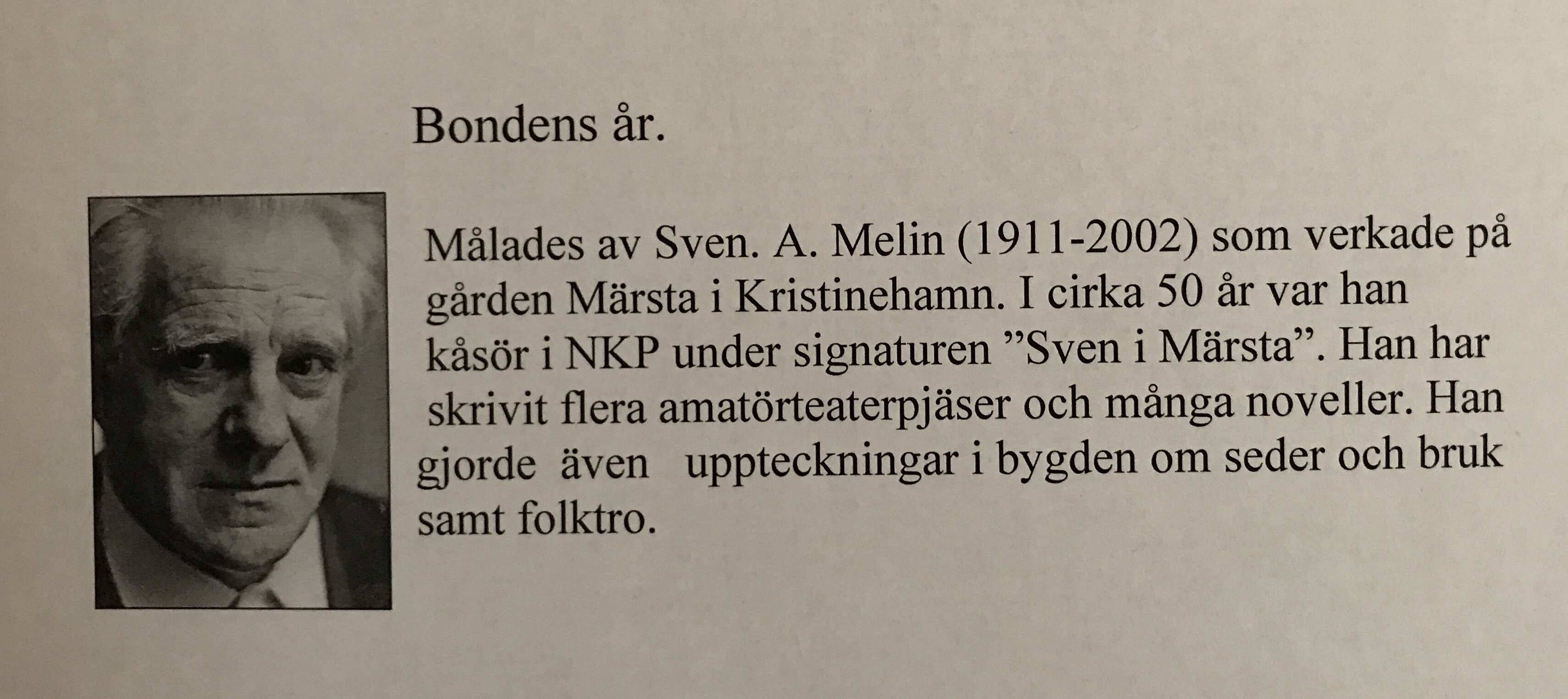 12 juli, 2017 Matmamman Bondens år på Kristinehamns hembygdsgård Ett besök på Kristinehamns hembygdsgård väckte minnen. Bondens år – tavlor målade av min morbror Sven A Melin. Så fint att få se detta! Upptäck mer från Matmamman Prenumerera för att få de senaste inläggen skickade till din e-post. Skriv din e-post … Prenumerera Betygsätt detta:Dela detta: Klicka för att dela på Facebook (Öppnas i ett nytt fönster) Facebook Klicka för att dela på Reddit (Öppnas i ett nytt fönster) Reddit Klicka för att dela på X (Öppnas i ett nytt fönster) X Klicka för att dela på WhatsApp (Öppnas i ett nytt fönster) WhatsApp Klicka för att dela via LinkedIn (Öppnas i ett nytt fönster) LinkedIn Mer Klicka för att dela till Pinterest (Öppnas i ett nytt fönster) Pinterest Klicka för att e-posta en länk till en vän (Öppnas i ett nytt fönster) E-post Klicka för utskrift (Öppnas i ett nytt fönster) Skriv ut Klicka för att dela på Tumblr (Öppnas i ett nytt fönster) Tumblr Klicka för att dela på Pocket (Öppnas i ett nytt fönster) Pocket Klicka för att dela på Telegram (Öppnas i ett nytt fönster) Telegram Gilla Laddar in … Relaterade