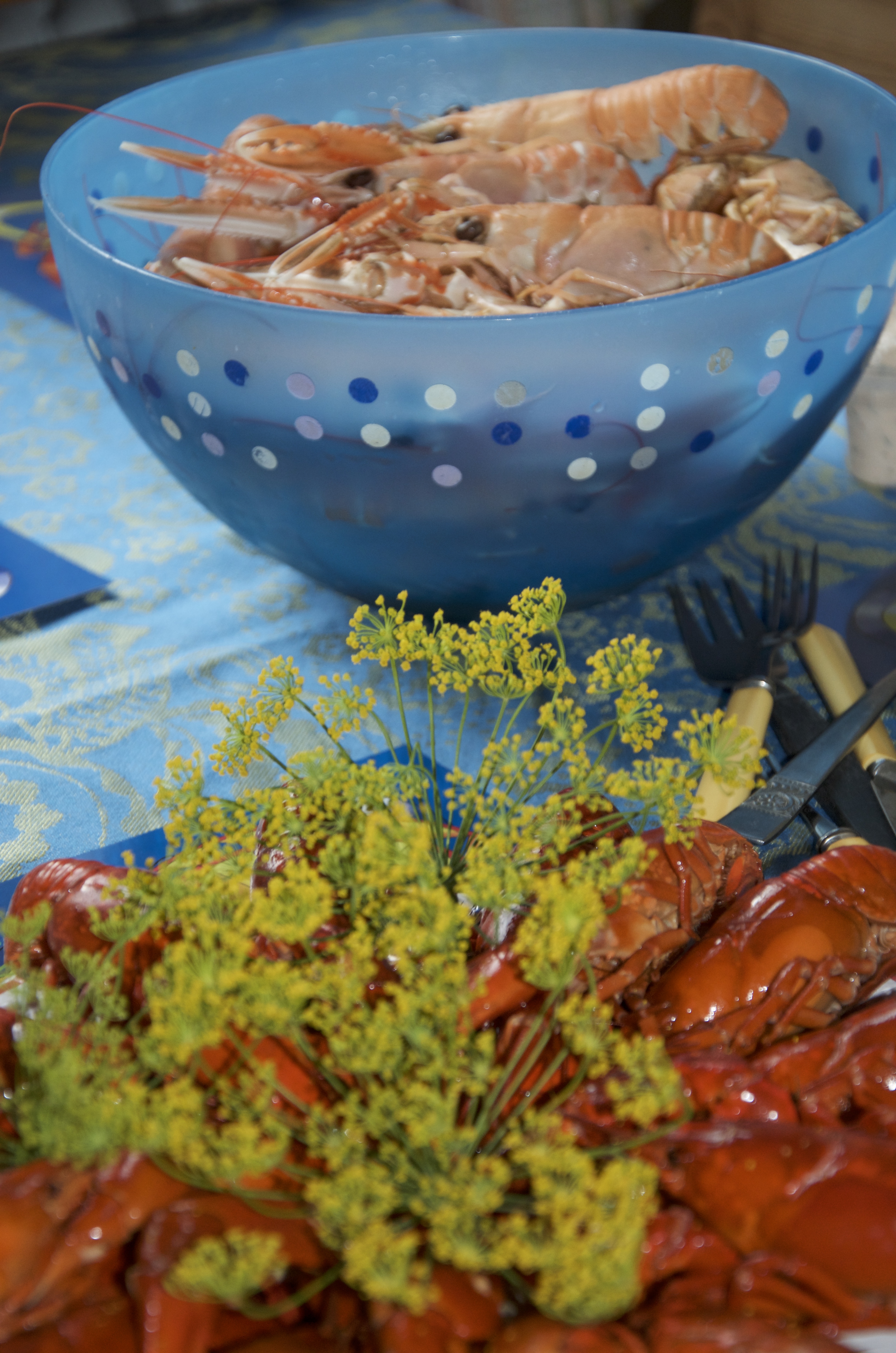 Nu är vi här igen – i kräftans tid. Som jag älskar denna härliga tradition! Jag har skrivit om det på bloggen många gånger, bland annat om när jag själv var med och fångade kräftor i Timsälven som barn på 1960-talet, innan kräftpesten tagit alla flodkräftorna där. Ett underbart minne!