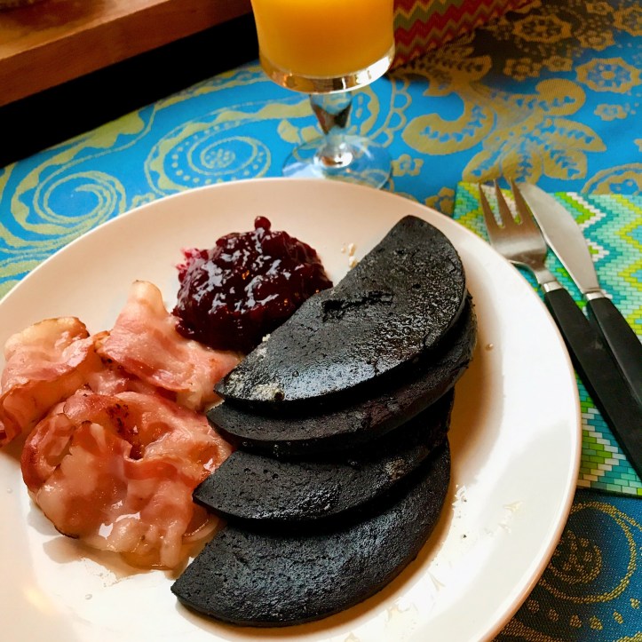 Idag har vi testat färdigskivad blodpudding till middag. Så gott och så billigt med bacon och lingon till!