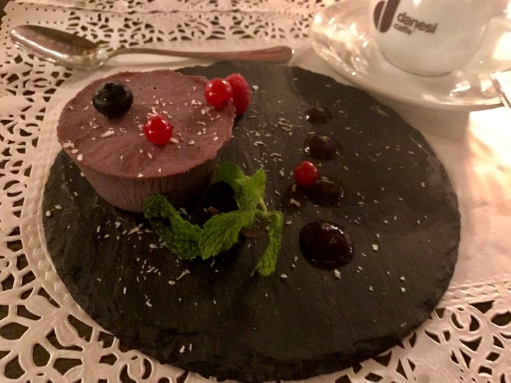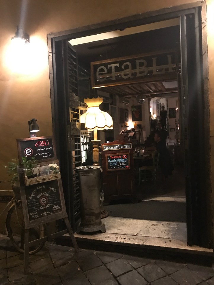 Nu har jag åkt till Rom igen för att jobba några dagar. Hittade också en ny trevlig restaurang, Etabli. Fräsch och vällagad pasta och en bra vinlista. Rött vin från Sardinien är en favorit. Desserten var en innovativ variant av pannacotta, gjord på kokosmjölk och svart rismjöl – mycket delikat!