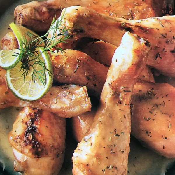 Gör så här: Torka kycklingen och lägg den i en skål, eller ännu hellre en låg och vid form. Blanda olja, citron, honung, örter och vitlök och häll detta över kycklingen. Täck formen med folie och låt stå i kylen över natten. Vänd då och då. Morgonen efter låter du kycklingen rinna av, men spara marinaden.