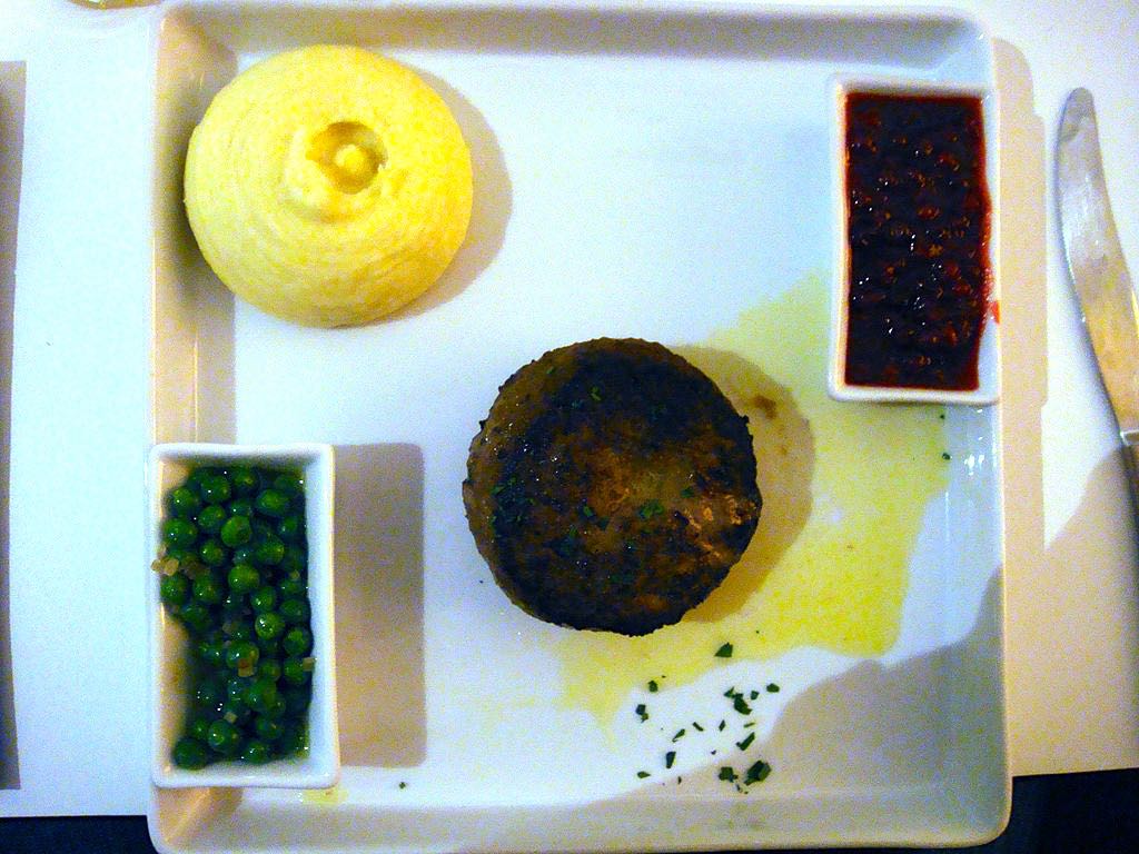 Avnjutes med potatismos, skirat smör, kokta gröna ärter och rårörda lingon.