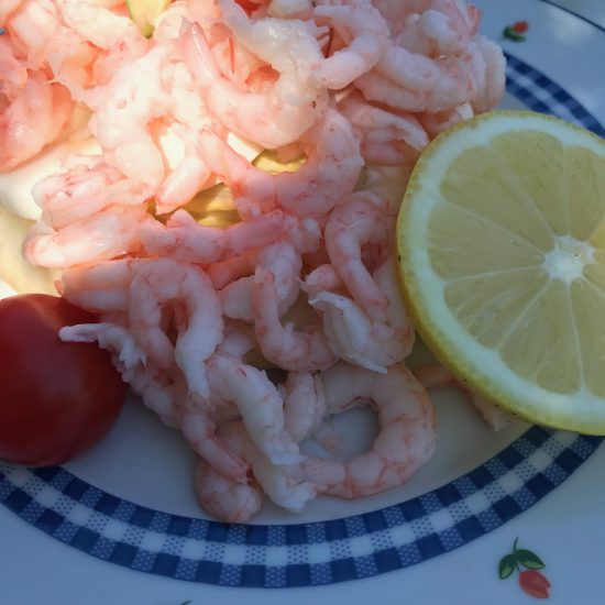 Idag är fiskaffären stängd, och sommarcaféet har stängt för säsongen. Så det blir till att göra en egen räkmacka.