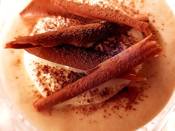 Vispa äggvitorna hårt, tillsätt resten av sockret och vispa tills det lösts upp. När mjölkblandningen börjar stelna skedar man i äggvitorna och vispgrädde. Rör om och häll upp i 8 dessertskålar och ställ kallt tills innehållet stelnat. Garnera med choklad eller nötter vid servering.
