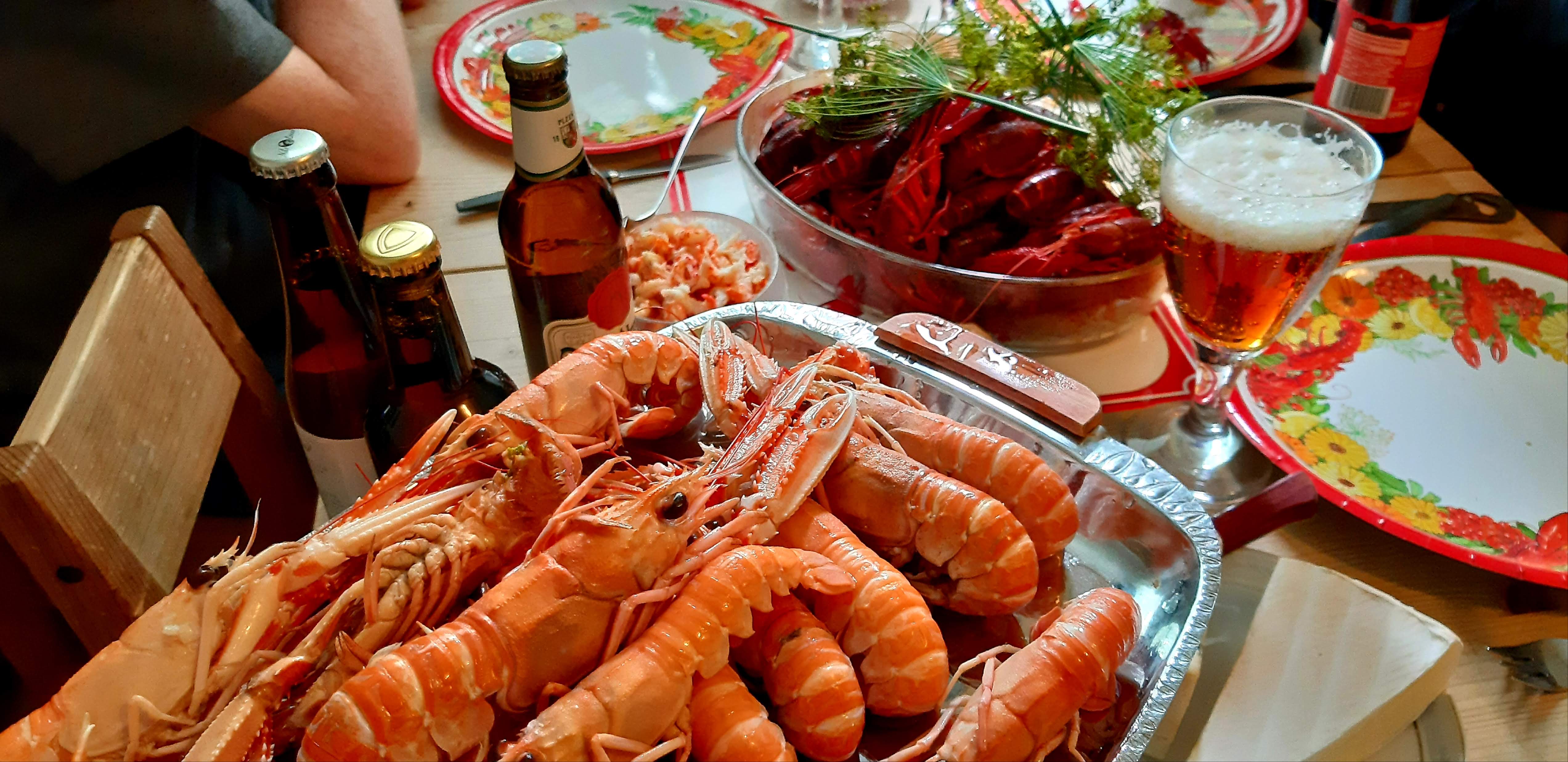 Nu är det dags igen – vi är i kräftans tid och här ska frossas på de röda läckerheterna. Ja, och på de brandgula också förstås – havskräftorna som jag nästan tycker är ännu godare och matigare än de röda… Men det är en smaksak förstås. Goda är de i alla fall, och allra helst med lite läckra tilltugg. Sprödvärmd baguette, ost och kex, en härlig ostpaj, eller varför inte en laddning köttbullar och prinskorv? Jag älskar den traditionella kräftskivan, och försöker avnjuta dessa underbara skaldjur så ofta jag kan nu under sensommaren och den tidiga hösten.
