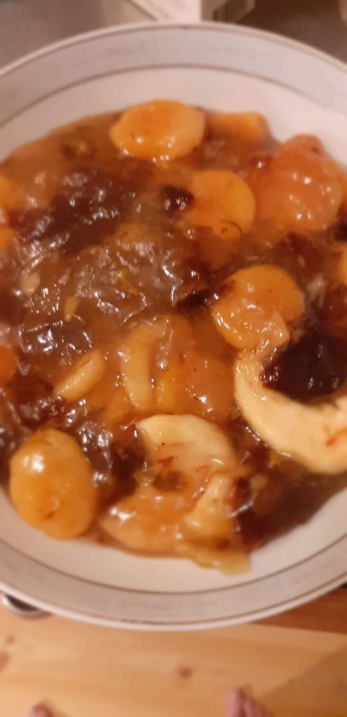 Söndagsmiddag – det är något visst med det. Jag försöker alltid laga något extra just på¨söndagen – inte nödvändigtvis något extra ”märkvärdigt” utan bara något extra gott. Oftast blir det husman, på mammas och mormors vis. Idag blir det persiljejärpar med potatis och gräddsås och klassiska tillbehör. Kräm på torkad frukt till dessert. Mitt recept på persiljejärpar hittar du här och recept på krämen finns här. I receptet ingår strösocker, men det går alldeles utmärkt att utesluta det för den torkade frukten ger alldeles tillräckligt med sötma.
