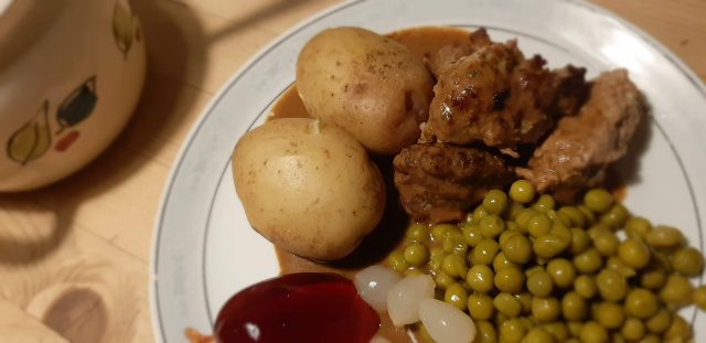 1-2 tsk kinesisk soja, gärna också ett par teskedar vinbärsgelé