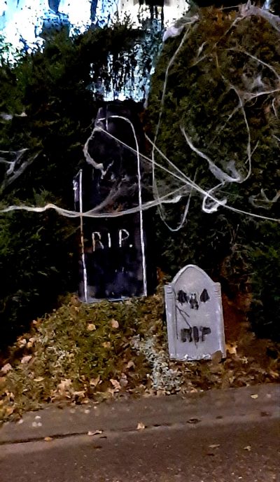 … fick vi när vi gav oss iväg till Trollbäcken på kvällen för att beskåda ”Halloweenhuset” – ett hus där man pyntar precis lika maffigt som i USA och som lockar mängder med åskådare och bus-eller-godisbarn. Läckert!
