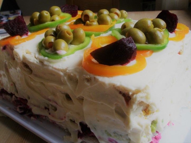 Det här är en vegetarisk smörgåstårta med inte mindre än fyra läckra fyllningar. Den är så fräsch och god att den blivit en favorit hemma hos oss. Du behöver: