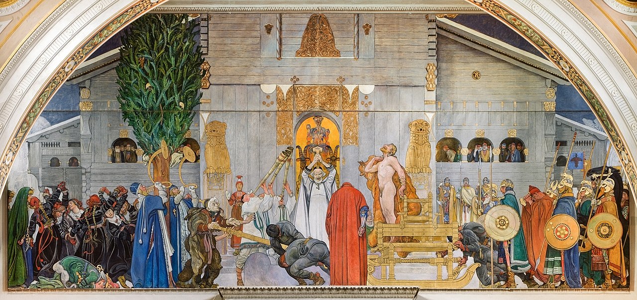 Det förkristna midvinterblotet har fascinerat och inspirerat många genom historien, inte minst den kände konstnären Carl Larsson, vars monumentalmålning med samma namn hänger på Nationalmuseum.