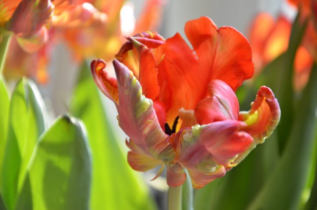 Nu är det tulpantider igen – det älskar jag. Så fort jag har möjlighet köper jag hem en bukett av denna krispiga, ljuvliga glädje – ibland passar jag på att köpa när tulpanerna har stått någon dag extra så de är nersatta, för jag tycker de är så vackra även om de inte är purfärska. Häller man lite potatismjöl i vattnet så står de sig extra länge.