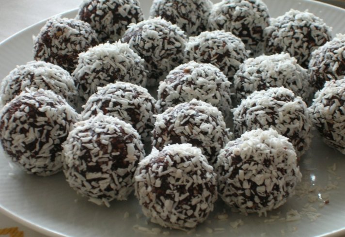 Rulla små bollar och rulla i kokos, pärlsocker eller havregryn eller i ditt favoritströssel. Förvara kallt.
