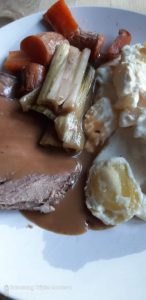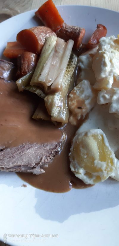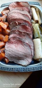 Ta loss steksnöret på steken och skär köttet i tunna skivor och servera med kokt potatis eller ett gott potatismos, grönsaker, gelé och den goda såsen.
