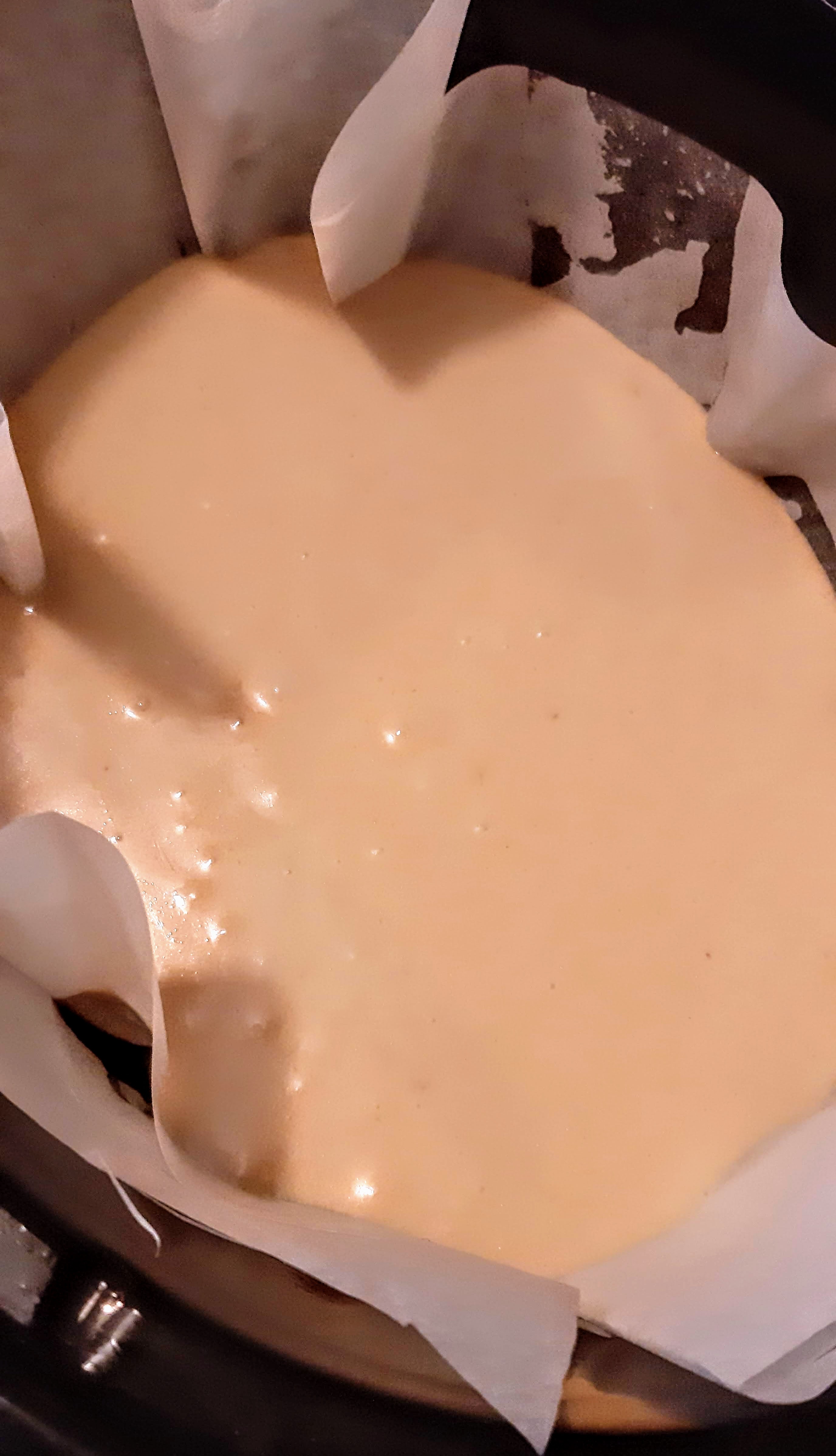 Sätt CrockPoten på högsta effekt och baka i ca 1 1/2 – 2 timmar. När 1 1/2 har gått kan du lyfta av locket och känna med en sticka om den är torr inuti.