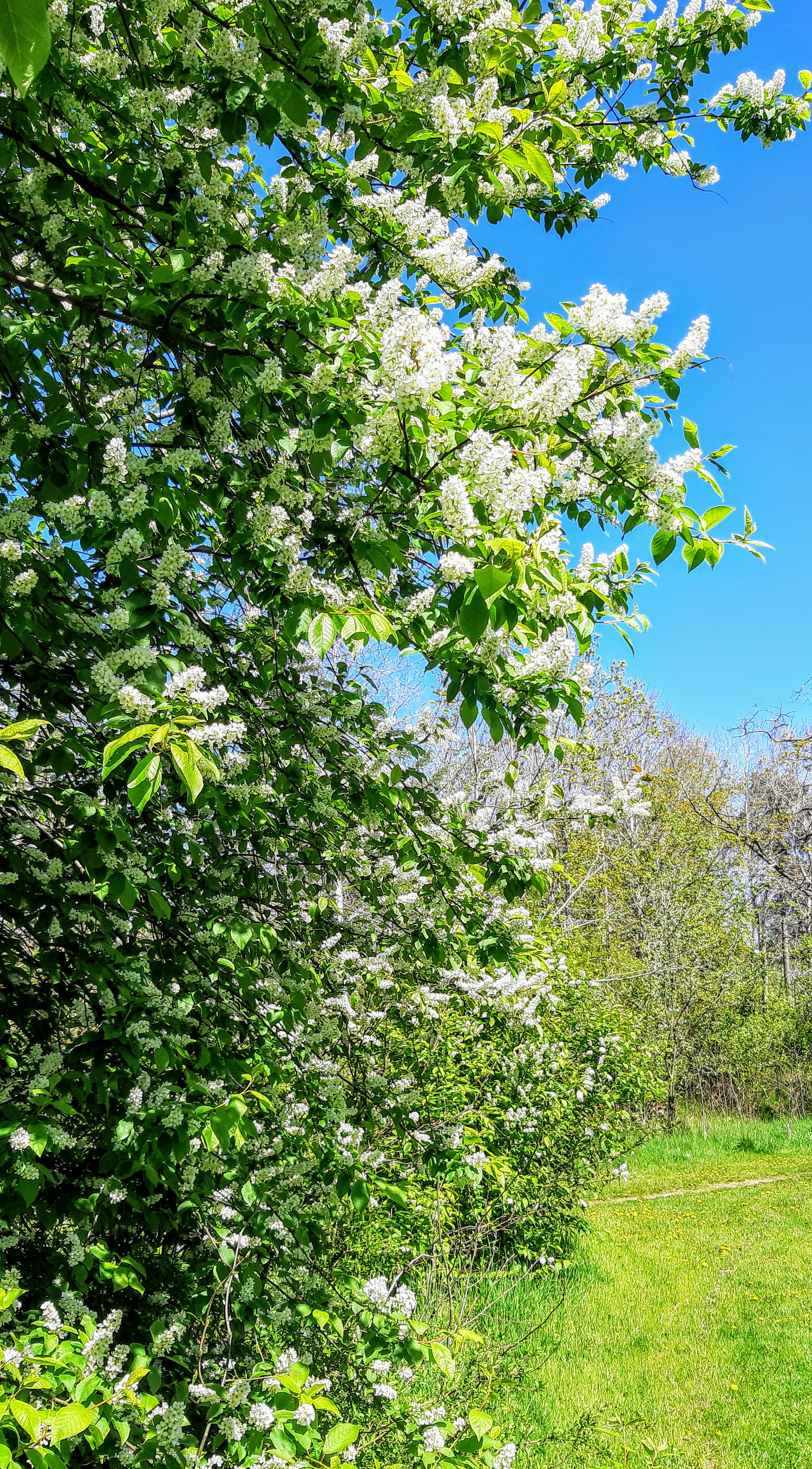 Häggen blommar som bäst just nu och var man än går i de fina strövområdena i mitt kvarter överväldigas man av den underbara doften. Själv minns jag så väl min barndoms vårar, när vi besökte morfar och satt och drack kaffe och hemkokt hallonsaft i trädgården, alldeles intill den blommande häggen. Dofterna, smakerna, de lågmälda samtalen, vårluften… Allt det där är så levande inom mig trots att det nu är länge, längesen. Och idag, när jag promenerar i mitt härliga område och njuter av prakten, blir jag både varm och lycklig inombords.