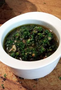 Chimichurri – eller chimmichurri – är en kryddstark sås som passar jättebra just till grillat kött. Såsen har, såvitt jag vet, sitt ursprung i Uruguay och Argentina men förekommer också ofta i Mexiko. God är den hur som helst, och mycket enkel att göra. Hettan bestämmer du själv – den är god även som lite mildare. Du behöver: