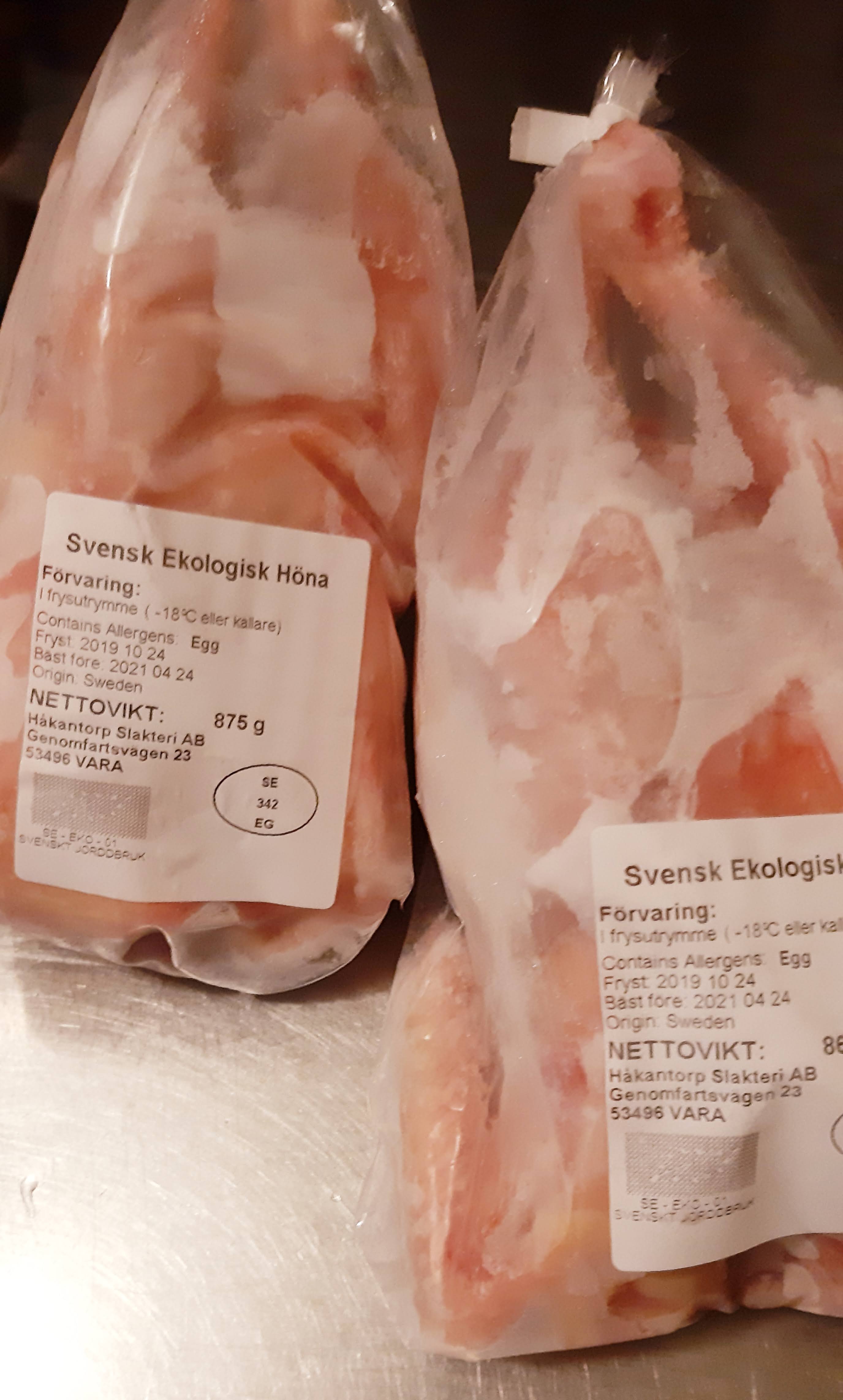 Ibland får man tag i kokhöns i butik – och ännu bättre på REKO-ring. Jag passar alltid på att handla en höna eller två, för köttet är smakrikt och gott och ser man bara till att koka det riktigt länge så blir det också mycket mört.