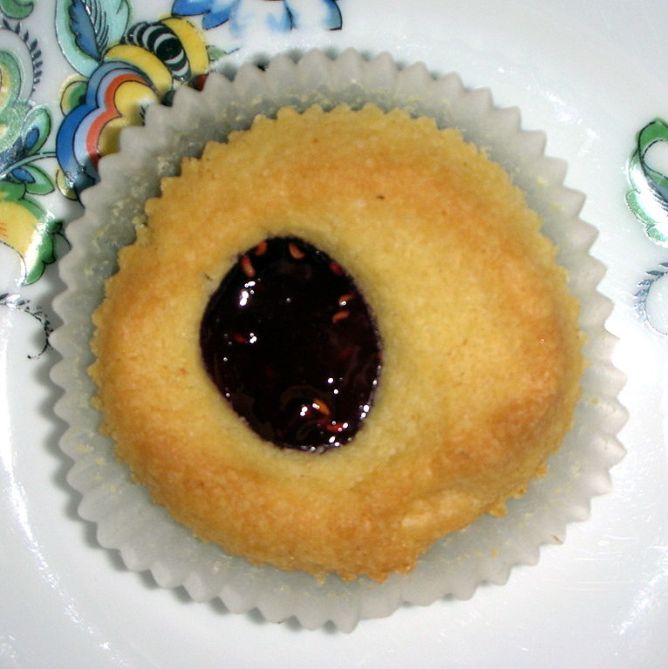 Ibland blir man verkligen sugen på klassiska syltkakor. De här gjorde min mamma då och då. Hon använde helst hallonsylt (som på bilden), men det blir fantastiskt gott även med vinbärssylt – prova!
