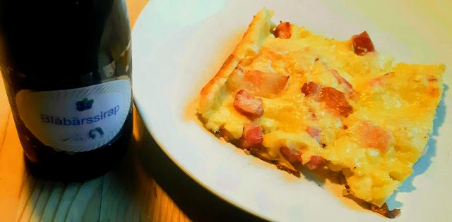 Tips! Om du får tag i lingonsirap eller blåbärssirap så är det vansinnigt gott just till fläskpannkaka. Själv fick jag det i present från en god vän som köpt det på REKO i Härjedalen, från ett företag som heter Im-kakor och som producerar både bröd och kakor och sylt och den fantastiskt goda bärsirapen. Extra plus, givetvis, för att allt är närproducerat! (Länk finns till höger under rubriken Närproducerat och ekologiskt)