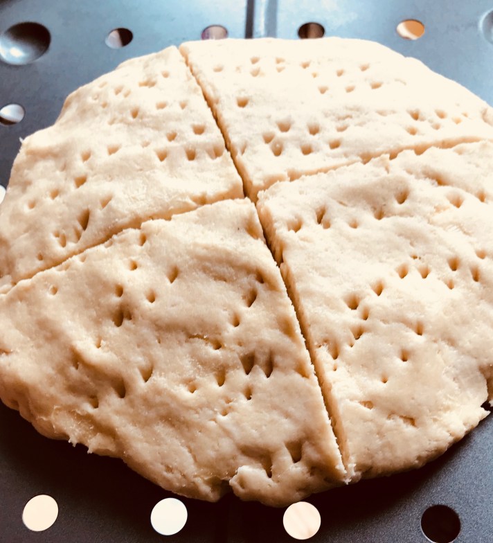 Dela degen i två bitar och platta ut till runda kakor, ca 20 cm i diameter. Skär skåror i varje kaka, som ett kors, och nagga dem med gaffel.