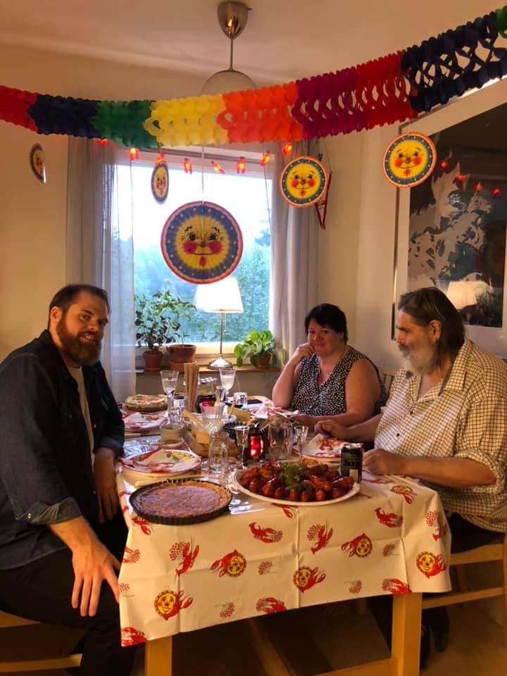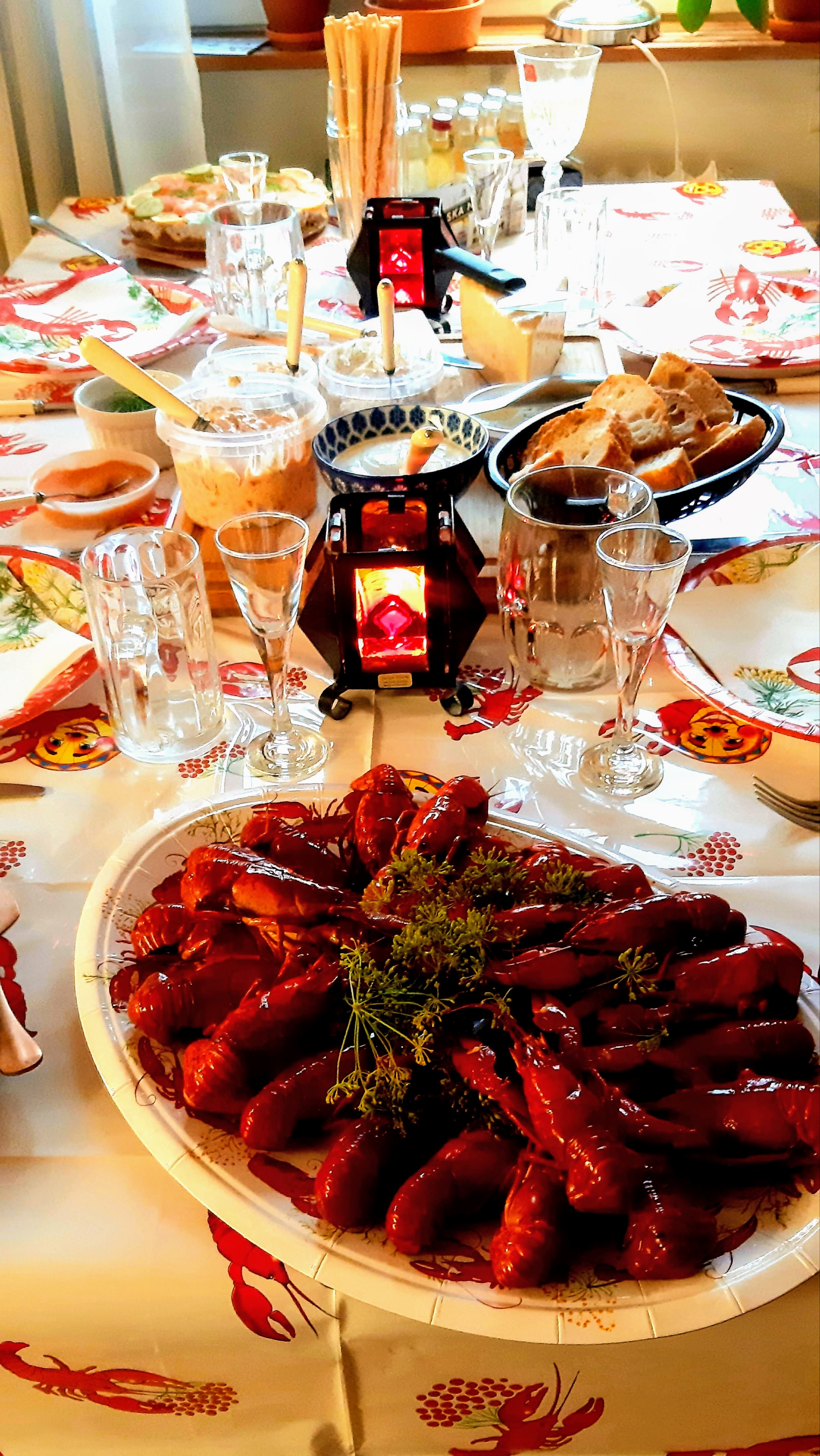 Igår var det kombinerad kräftskiva och födelsedagsfest hos sonen som fyllde 33. Rött guld, supergod Västerbottensostpaj och svärdotterns fantastiska laxtårta plus goda röror införskaffade på Högdalens fina fiskaffär. En massa goda drycker till samt kaffe och tiramisu till dessert. En alldeles underbar kväll!