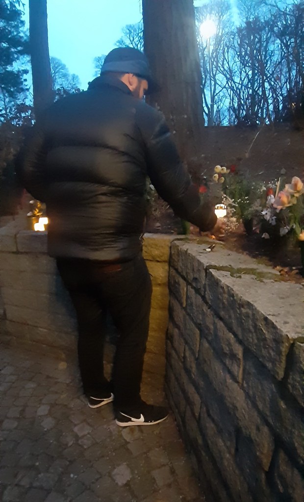 Så här på första advent vill man förstås gärna skicka en liten hälsning även till dem som lämnat jordelivet. Det gjorde vi igår, då vi besökte Skogskyrkogården här i Karlskoga och tände ljus för de delar av familjen som numera bara lever i våra hjärtan.