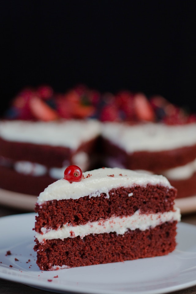Amerikanska tårtor är fantastiskt maffiga och goda. Den här klassikern med sydstatsanor, Red Velvet Cake, pryder sin plats på vilket kaffebord som helst och smakar verkligen mer! Namnet har den fått efter den djupröda färg som uppstår när filmjölk, kakao och vinäger blandas. Röd karamellfärg är alltså inte nödvändig, men fördjupar färgen och gör tårtan ännu snyggare.