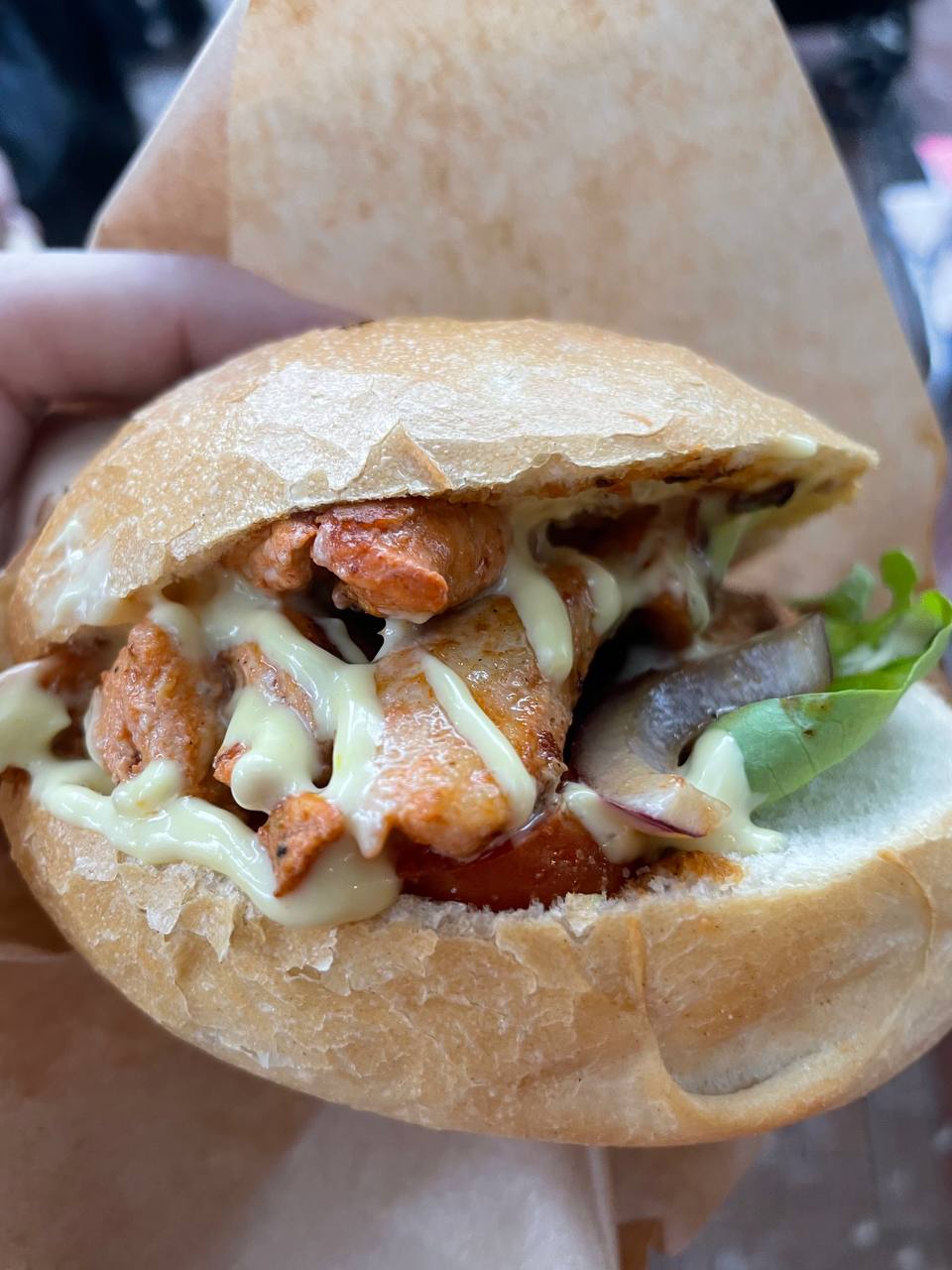 Massor med roliga loppisgrejer och fantastiska food trucks och vi passade på att avnjuta en pan con pollo – grillad kyckling i bröd – vid en peruansk food truck. Underbart gott!