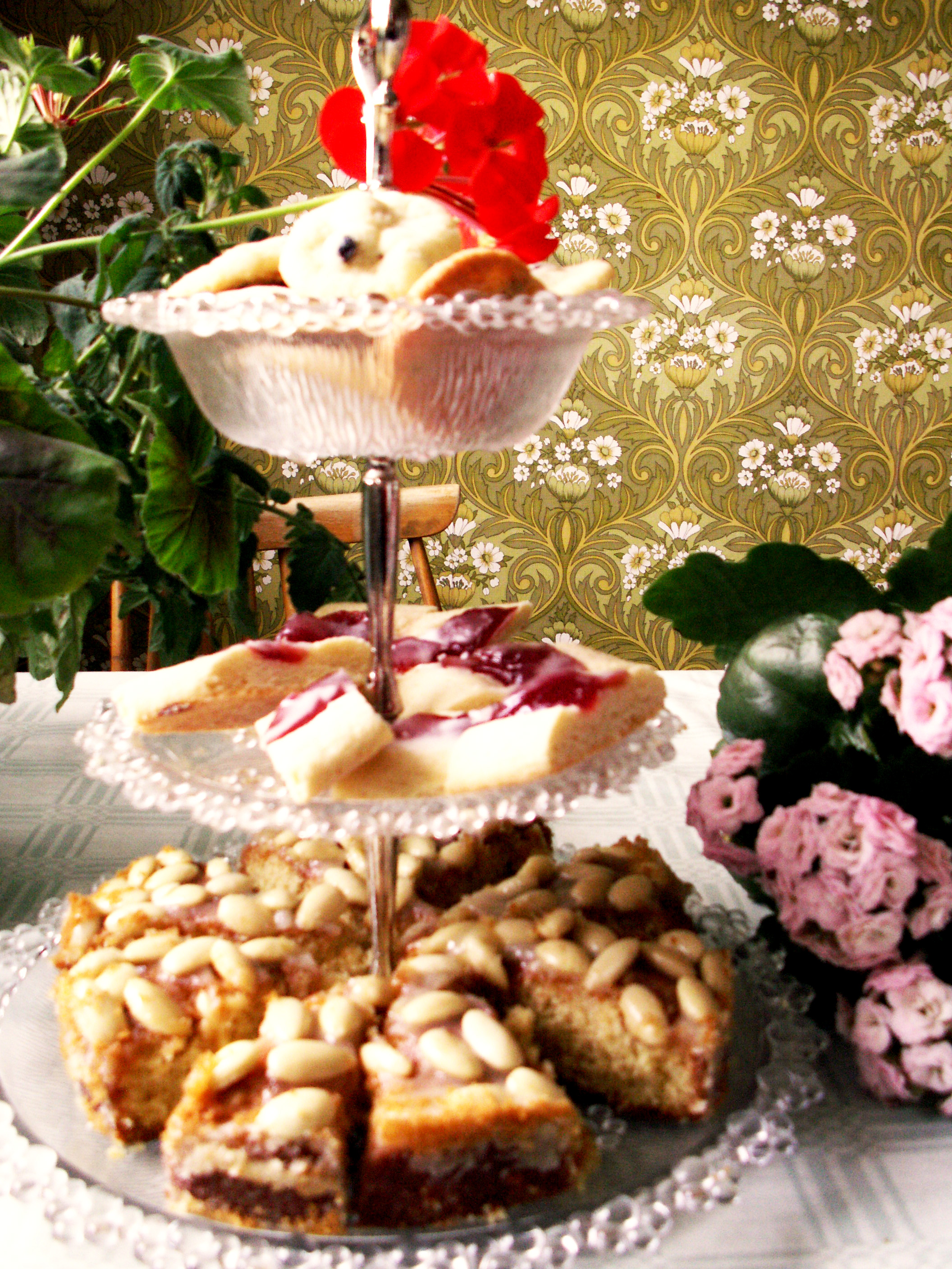 Nu är vi inne i juli. I vår familj har det firats många födelsedagar just i juli, så kafferep hörde till vanligheterna under min uppväxt. Den traditionen håller jag hårt på än idag, så juli är de traditionella kafferepens månad hos oss. Här har bakats om inte sju sorters kakor så i alla fall tre, och nu är det dags att sätta på en kanna kaffe!