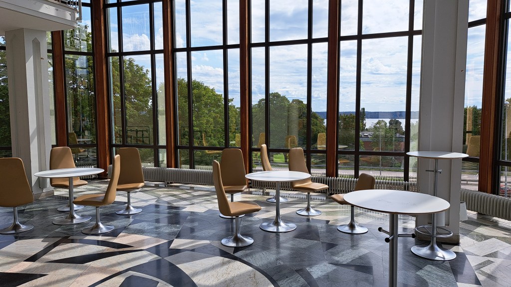 Just nu är jag på semester i mina gamla hemtrakter, närmare bestämt i Karlskoga. Härom dagen hade jag förmånen att få spana runt lite i Folkets Hus, där en gammal bekant från skoltiden driver biograf. Så underbar byggnad, ett fantastisk exempel på fin arkitektur från 40-talet. Och utsikten över sjön Möckeln…