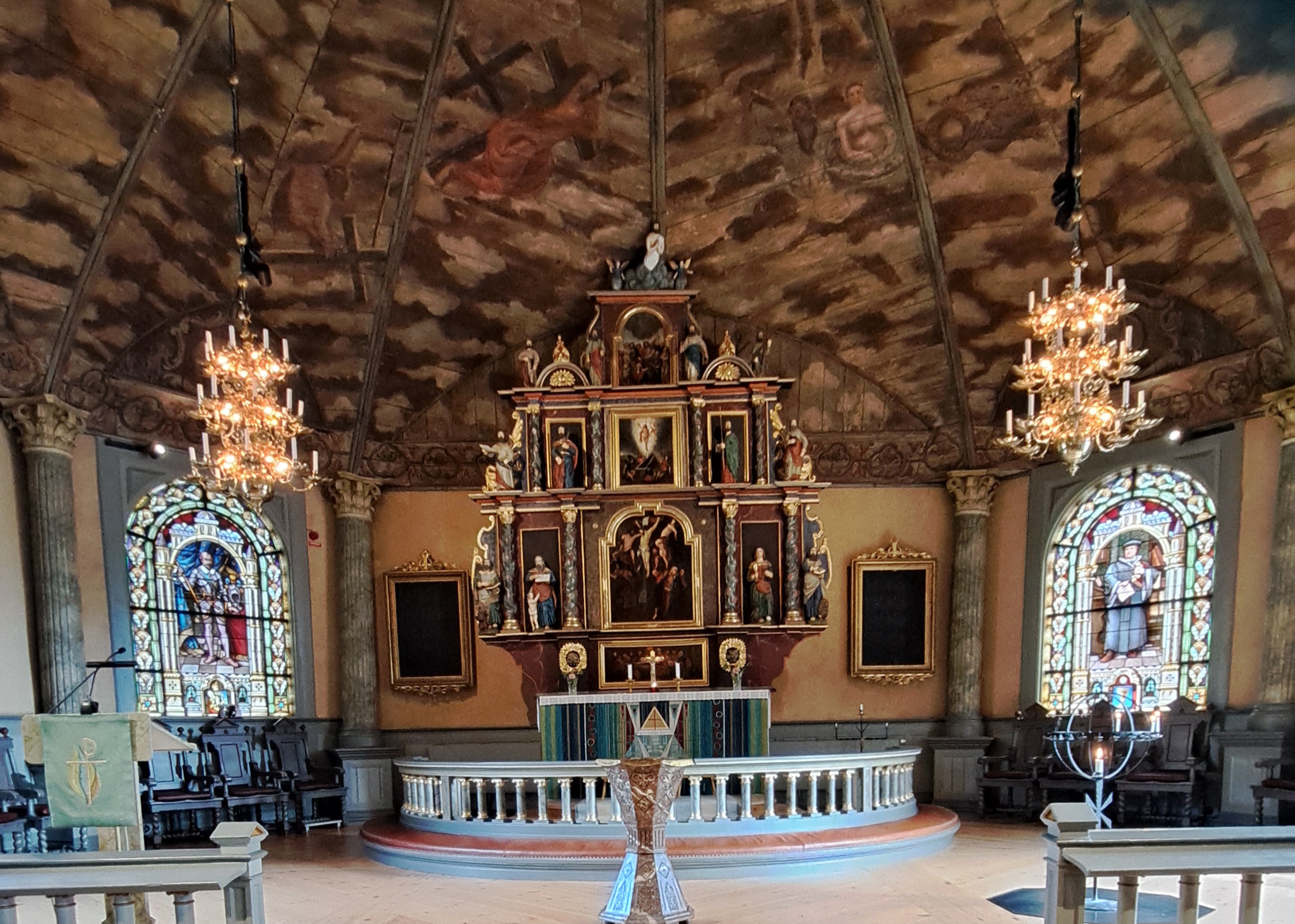 Karlskoga är en fantastisk sommarstad! Okej att kommunpolitikerna sabbade mycket av känslan i stadskärnan under den stora rivningsvågen under 70-talet men det finns fortfarande små guldkorn kvar här och var. Kyrkan till exempel, som ligger mitt i stan som en fantastisk oas. Nu under sommaren är den dessutom öppen för allmänheten även mitt under veckan så självklart passade jag på att trava in en stund.