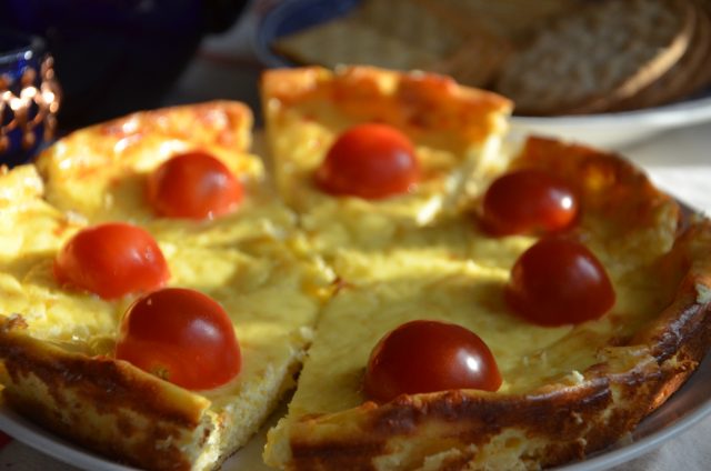 Rör ihop 2 pkt färskost av Philadelphiatyp (smaksatt eller naturell) med 4 ägg och 3 dl riven ost (gärna Västerbotten), kanske också lite salt och peppar.